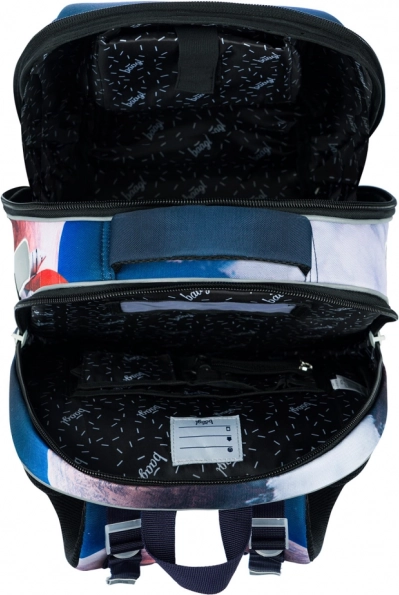 Per l’uso quotidiano sono fondamentali ordine e resistenza. I due scomparti spaziosi aiutano a distribuire uniformemente il peso; nel comparto anteriore non mancano un organizer con taschina per piccoli oggetti o telefono e un moschettone per le chiavi. Le tasche laterali in rete tengono saldamente la bottiglia, il fondo rigido mantiene la cartella stabile in posizione eretta e gli elementi riflettenti aumentano la visibilità del bambino nel tragitto verso la scuola. Il resistente materiale impermeabile protegge il contenuto con qualsiasi tempo.
