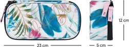 Il popolare astuccio BAAGL dal design moderno con foglie tropicali è una scelta ideale per la scuola e le attività extrascolastiche. Grazie alla robusta fattura in tessuto e alla cerniera di qualità, mantiene tutte le penne e le matite al sicuro e ben organizzate. L'aletta interna ribaltabile con passanti elastici facilita l'accesso rapido a penne e matite, mentre la tasca con zip ospita piccoli oggetti come gomme e temperini.