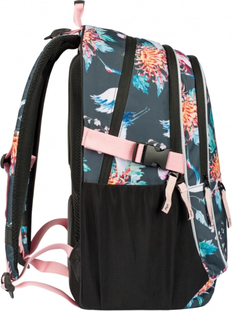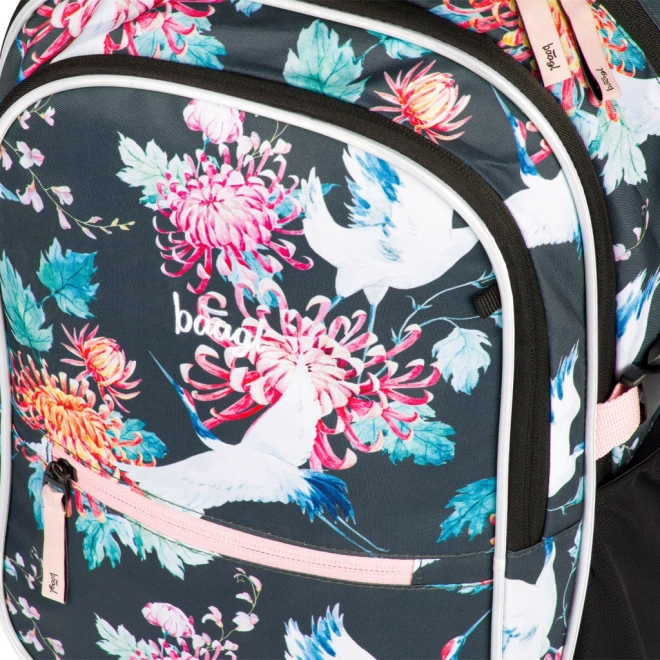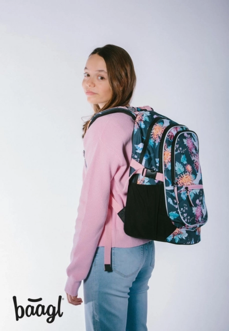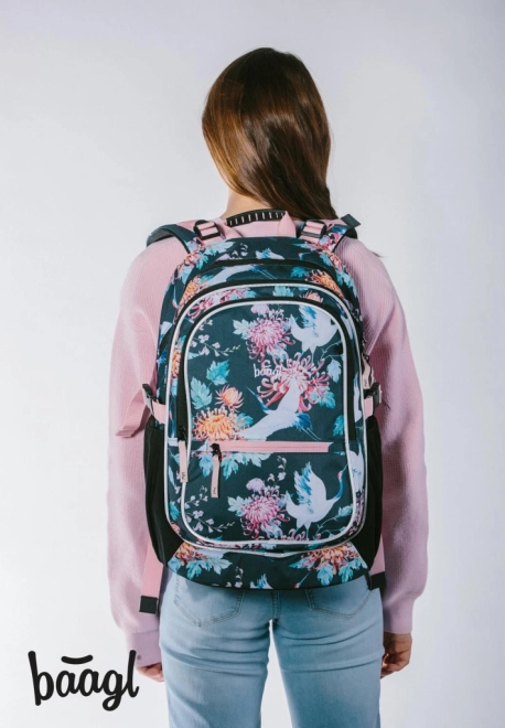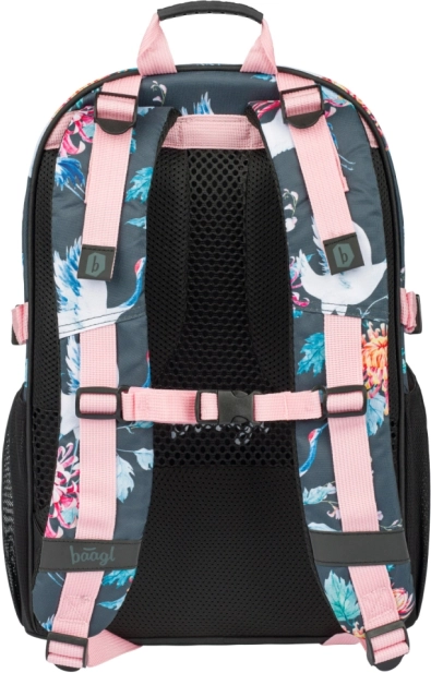 BAAGL Core Birds E8 uno zaino scolastico ben studiato che combina comfort, sicurezza e design moderno con motivo floreale e uccelli. Il peso ridotto di 900 g e lo schienale ergonomico garantiscono comoditE0 per tutta la giornata, mentre le cinghie regolabili assicurano una vestibilitE0 ideale sul corpo.