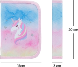 L'astuccio BAAGL Rainbow Unicorn a un piano combina un design adorabile con una suddivisione pratica. Le due alette interne con passanti tengono matite, penne e piccoli accessori scolastici ordinati al loro posto. Il tessuto resistente e la zip di qualità assicurano lunga durata e chiusura sicura.