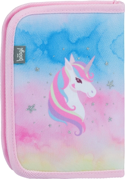 Elegante astuccio scolastico con motivo unicorno Rainbow Unicorn di BAAGL che farà felice ogni scolaro. Offre un'organizzazione chiara grazie a due alette interne, una zip di qualità e una resistente realizzazione in tessuto. Ideale per l'uso quotidiano a scuola – pratico, leggero e senza contenuto per comporre liberamente il proprio set di cancelleria.