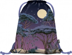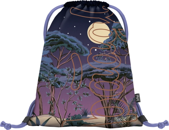 Lo zaino è decorato con un design notturno caratterizzato da un bosco, la luna e le stelle, ideale per l'uso all'aperto o per il tempo libero.