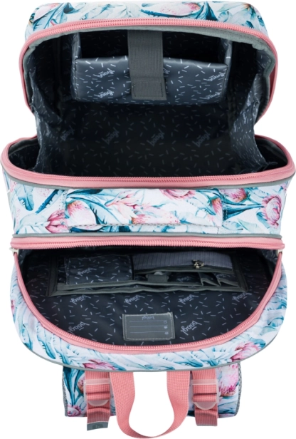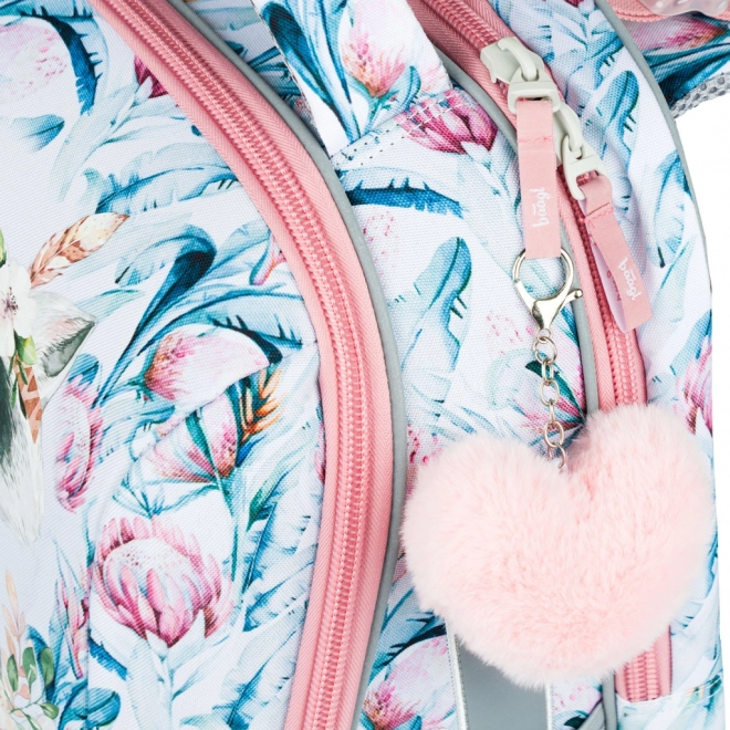 La solida struttura della cartella protegge tutti i contenuti e offre un senso di stabilità. Grazie agli elementi riflettenti, il bambino è sempre visibile sulla strada per la scuola. La cartella è anche dotata di un elegante portachiavi peloso che aggiunge un tocco di tendenza.
