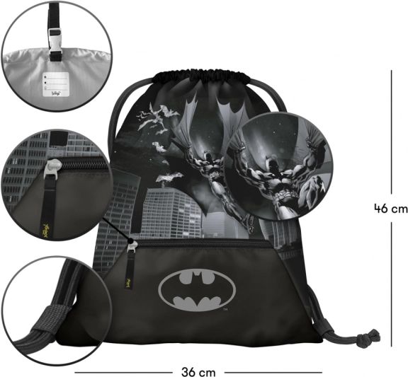 Sul sacco troverai il motivo di Batman, che appare stiloso e attraente non solo per gli appassionati di fumetti.