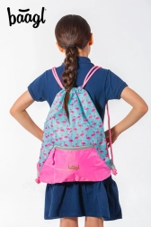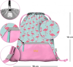Zaino alla moda con motivo di fenicotteri di BAAGL è ideale per trasportare scarpe o piccoli oggetti. Dotato di una comoda tasca con zip e moschettone per fissaggio alla cartella.