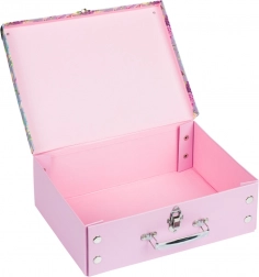 Gli angoli rinforzati proteggono la valigetta dai danni, il manico in metallo è robusto e comodo da impugnare e la fibbia affidabile mantiene il contenuto al sicuro. La carta laminata robusta garantisce lunga durata e peso ridotto: ideale per i bambini a scuola e in viaggio.