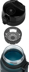 Questa borraccia in tritan BAAGL da 350 ml con attraente gradiente dal nero al blu è un compagno affidabile per l’idratazione quotidiana. Il coperchio con blocco previene fuoriuscite indesiderate e consente un apertura rapida e intuitiva con una sola mano. Grazie al filtro integrato potrai gustare acqua aromatizzata con frutta o tè sfusi – il materiale è adatto anche alle bevande calde.
