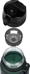 Il tappo con chiusura di sicurezza non lascia fuoriuscire nemmeno una goccia e garantisce un utilizzo semplice e intuitivo. La bottiglia è dotata anche di un filtro, grazie al quale puoi usarla per limonate con frutta o per il tè (il materiale è adatto anche per bevande calde). Alla bottiglia è inoltre fissato un laccetto per un comodo trasporto a mano.