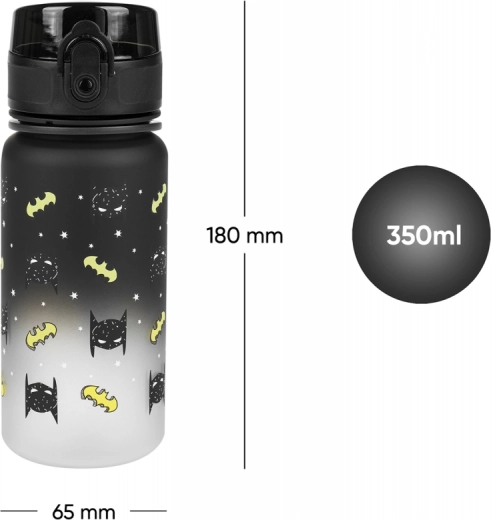 Una borraccia dal design sfumato con loghi gialli del pipistrello che farà felice ogni fan di BATMAN. È realizzata in tritan certificato privo di BPA, PVC e ftalati, che non assorbe odori ed è sicuro per la salute: lo stesso materiale è usato anche in ambito medicale. La capacità di 350 ml è ideale per bambini e adulti per l’idratazione quotidiana.