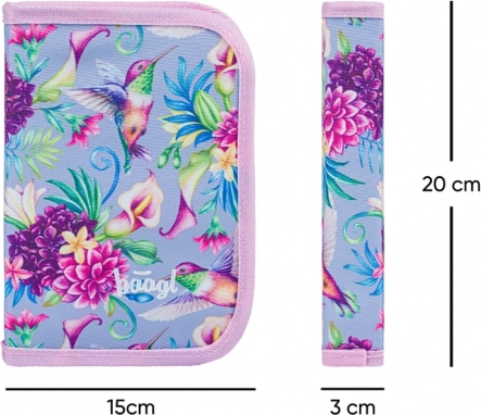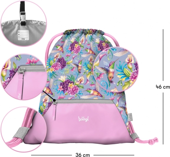 Il leggero e confortevole set scolastico BAAGL per la scuola primaria unisce uno zaino ultraleggero Airy, un astuccio pratico a due alette e una sacca resistente per scarpe di ricambio o ginnastica. Schienale ergonomico con sistema Airflow Ergo, elementi riflettenti, chiusura magnetica e materiale idrorepellente garantiscono sicurezza, comfort e lunga durata, il tutto con un bellissimo motivo di colibrì e fiori.