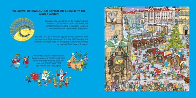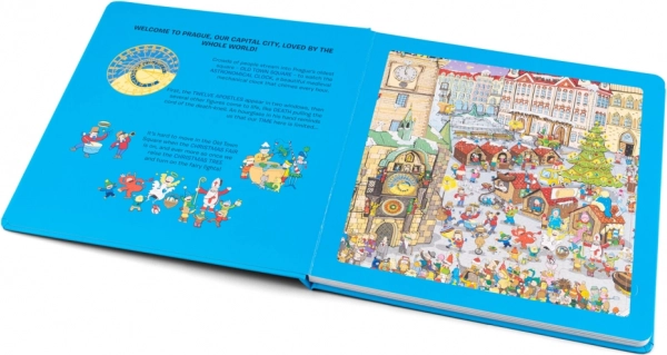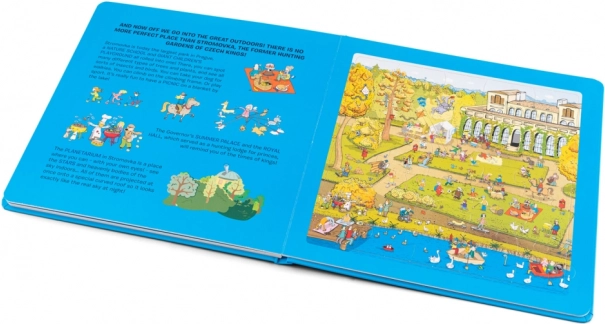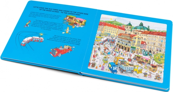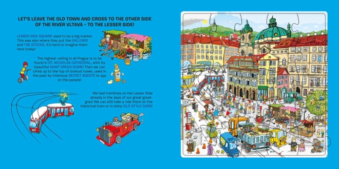 Un esempio pratico di come i vostri bambini possono esplorare Praga giocando con puzzle in ogni pagina del libro.