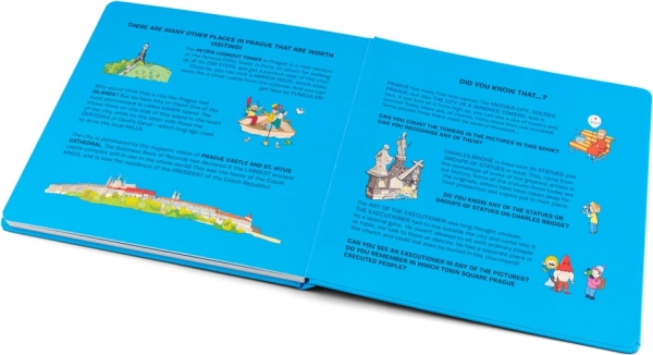 Sulle ultime pagine del libro, i bambini troveranno semplici domande quiz che miglioreranno la loro conoscenza di Praga.