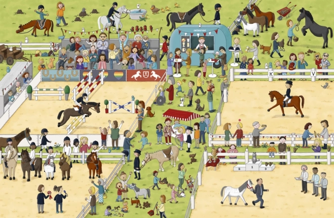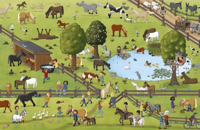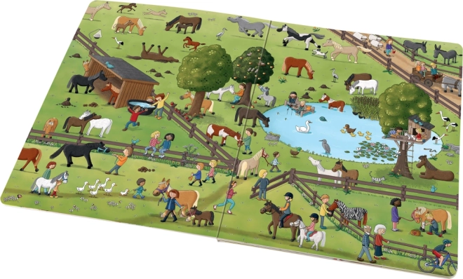 Questo libro illustrato per bambini vi porta in un viaggio di un'intera giornata nel mondo dei cavalli e dei pony. Darete uno sguardo alla vita in una fattoria di cavalli, partirete per una passeggiata, tiferete alle corse e osserverete stalloni, giumente e puledri al pascolo. In ogni doppia pagina troverete personaggi e animaletti ricorrenti da scoprire pif9 e pif9 volte e28093 l'interattivo cerca-e-trova sostiene le capacite0 di osservazione, la concentrazione e la gioia della scoperta.