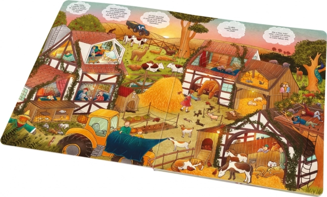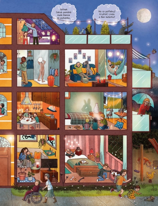 Scoprite con i bambini cosa accade quando il mondo intorno si addormenta. Pagine piene di illustrazioni dettagliate aprono le porte alla fattoria, alla città brulicante e al bosco profondo – e non manca il mondo dei giocattoli, che di notte prendono vita. Il libro invita a essere sfogliato più volte e a raccontare insieme.