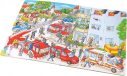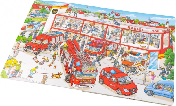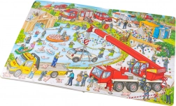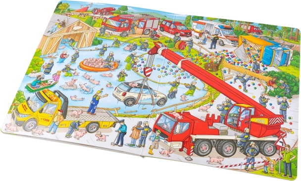Questo grande libro illustrato conduce i piccoli lettori nel mondo dinamico dei vigili del fuoco. I bambini vedranno come ci si prepara all’uscita, come funziona la lunga scala, le autopompe e altre attrezzature, e come si svolge il salvataggio delle persone dalle case in fiamme. Le illustrazioni sono ricche di dettagli e invitano a raccontare storie.