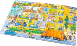 Questo libro di grande formato e8 ideale per leggere e raccontare insieme. I bambini scopriranno cosa accade in citte0 dalla mattina alla sera dal lavoro degli spazzini e la spesa, alla scuola dell'infanzia, al cantiere, ai vigili del fuoco e alla polizia, fino al divertimento pomeridiano al parco e alle gite al lago o in fattoria. Ogni pagina e8 piena di spunti per conversare e cercare dettagli.