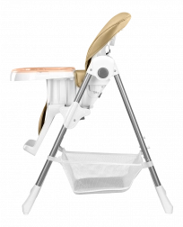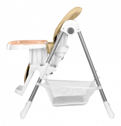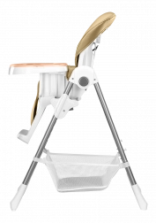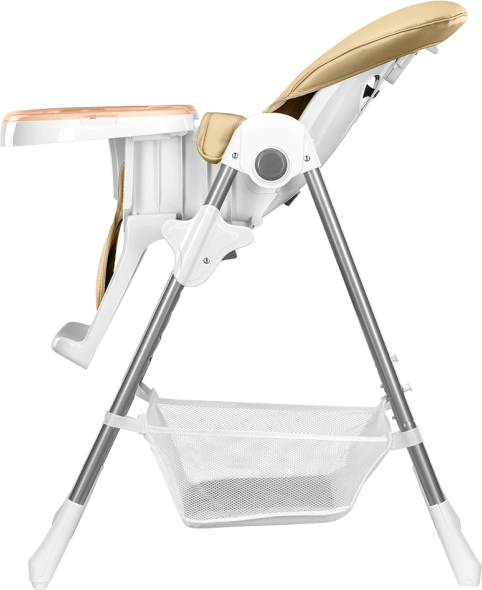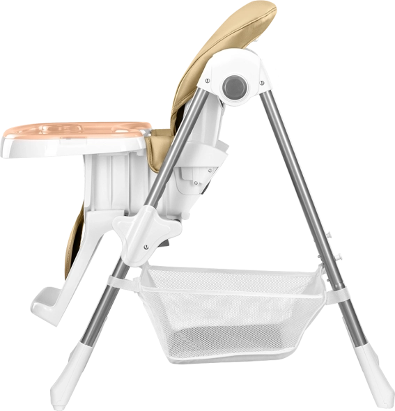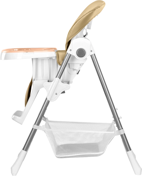 La sicurezza è garantita da cinture a 5 punti, struttura rinforzata e inserti antiscivolo. Dettagli pratici come il poggiapiedi removibile, l’ampio cestello per giochi e accessori e le ruote per lo spostamento facilitano l’uso quotidiano. Terminato il pasto, il seggiolone si richiude in pochi secondi fino a uno spessore compatto di circa 30 cm.