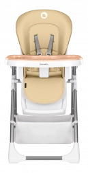 Il rivestimento in eco‑pelle si pulisce con una passata dopo i pasti. I due vassoi rimovibili possono essere lavati in lavastoviglie, così il seggiolone è pronto all’uso in un attimo.
