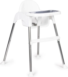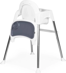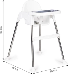 Il moderno seggiolone 2 in 1 è realizzato con materiali di alta qualità. La sedia è adatta per bambini da 6 a 36 mesi. Può essere assemblata in due altezze. Vantaggi del seggiolone: seduta confortevole con barriera anti-scivolamento, cinture di sicurezza a 5 punti, gambe stabili e antiscivolo, pratica pedana poggiapiedi, vassoio in plastica removibile. Le dimensioni della sedia montata sono circa 86 x 67 x 60 cm. Il carico massimo è di 15 kg.