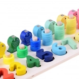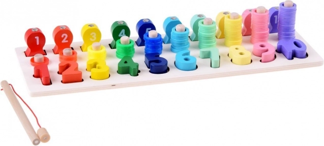 Il set educativo in legno permette ai bambini di riconoscere forme e numeri, insegnando al contempo a contare fino a dieci.
