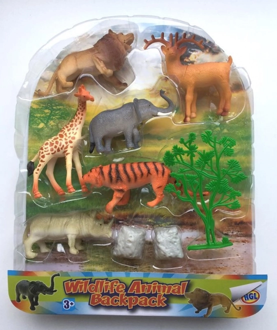- Contenuto della confezione: 6 figurine di animali selvatici, rocce, albero, zainetto trasparente