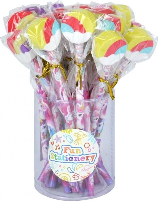 Allegre illustrazioni di unicorni invogliano a scrivere e disegnare, trasformando una semplice matita in un accessorio preferito.