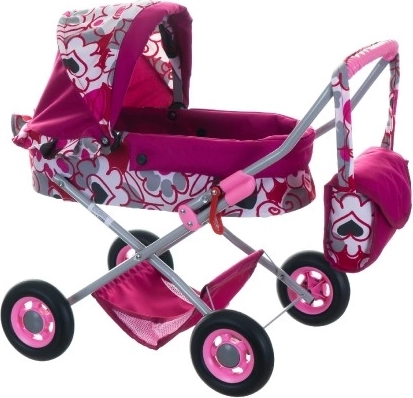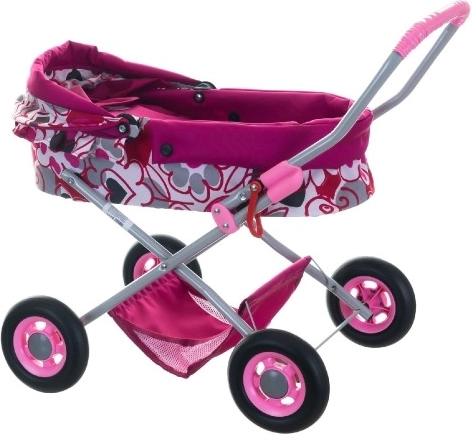 La dotazione include un cestino inferiore e una borsa per la spesa, dove i bambini possono riporre biberon, pannolini e altri accessori per le bambole. L'impugnatura ergonomica a un'altezza di circa 50 cm è comoda da tenere e le dimensioni della carrozzina sono ideali per i bambini in età prescolare.