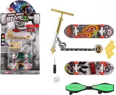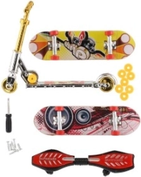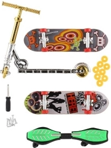 - 2× mini skateboard, 1× finger monopattino, 1× waveboard, ruotine, viti, mini cacciavite