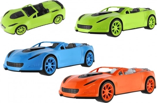 La grande auto sportiva in plastica con carrozzeria aperta entusiasma i piccoli piloti con un look realistico e una guida fluida a ruota libera. Perfetta per la cameretta e per il parco – è leggera, resistente e facile da trasportare grazie alla confezione in rete.