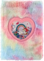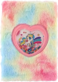 Goditi la scrittura e la creatività con questo taccuino di stile in peluche arcobaleno. La superficie morbida è piacevole al tatto e la finestrella a cuore con paillettes e unicorno dona alla copertina un aspetto giocoso e magico. Il taccuino è perfetto per la scuola, il tempo libero e come diario personale.