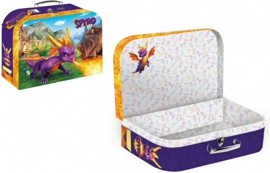 Questa valigetta scolastica è realizzata in cartone pressato con laminazione in superficie, che garantisce elevata resistenza e durata. Grazie alla fibbie in metallo e alla maniglia confortevole, l'uso è molto semplice e pratico. La valigetta è ideale per bambini dai 3 anni e porta loro gioia con il suo motivo tenero e avventuroso del drago Spyro.