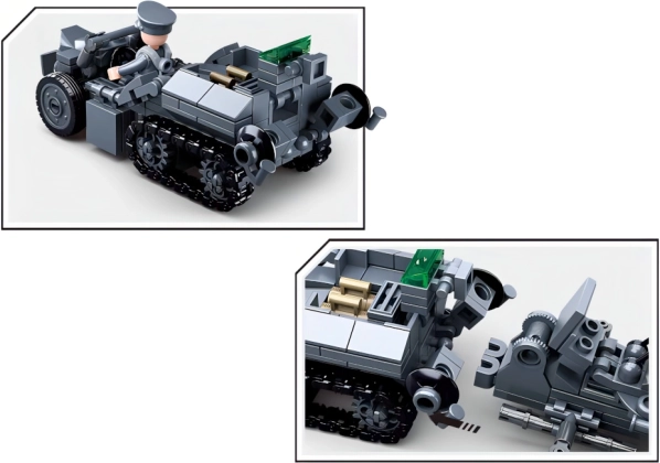 Questo set da costruzione offre strumenti complessi per creare scenari militari con tecnologia antiaerea tedesca. Le parti principali includono lanciatori di razzi, cannoni antiaerei, veicoli blindati e motociclette cingolate speciali. Combinando è possibile creare un grande modello di unità d'attacco mobile.