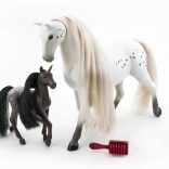 Le dimensioni dei cavalli sono inoltre ideali per il gioco e il divertimento dei bambini - la giumenta misura 18 cm e il puledro 11 cm, perfettamente adatti a qualsiasi collezione di giochi.