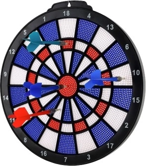 Goditi il classico divertimento delle freccette in una versione sicura per bambini e adulti. Questo bersaglio in plastica con settori colorati e marcature ben leggibili offre un’ottima combinazione di gioco e allenamento della precisione. Le quattro freccette leggere con punte in plastica intercambiabili sono delicate sia sul bersaglio che sull’ambiente circostante.
