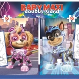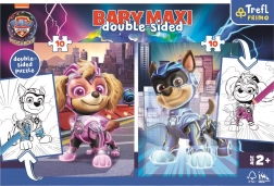 Puzzle Maxi 2x10 contiene due grandi puzzle suddivisi in 10 grandi pezzi, ideali per i bambini dai 2 anni in su. Ogni puzzle è bifacciale: da un lato vi è un'immagine a colori degli eroi preferiti della serie animata Paw Patrol e dall'altro un grande libro da colorare.