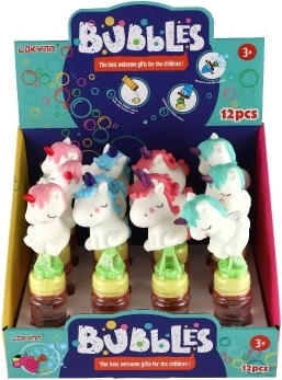 La figurina dell'unicorno sul tappo trasforma un normale gioco per bolle in un giocattolo amatissimo. Dettagli e colori giocosi colpiscono al primo sguardo.