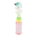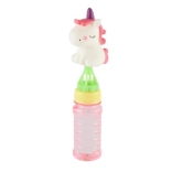 Gioco per bolle di sapone con unicorno a pressione che offre ai bambini un divertimento infinito in casa e all'aperto. Grazie alla lunghezza di 18 cm si impugna bene ed è facile da usare: basta versare la soluzione nel tappo, immergere, ruotare e premere la figurina. Crea splendide bolle iridescenti, è ideale per bambini dai 3 anni ed è disponibile in diversi colori.