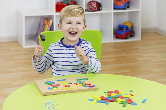 Scopri il mondo creativo con il gioco di martellamento Lena per bambini. Questo giocattolo supporta la creatività dei bambini, la concentrazione e la motricità fine. Grazie ai 72 pezzi colorati in varie forme, i bambini possono creare innumerevoli figure secondo la propria immaginazione.
