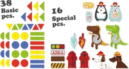 - Include 38 pezzi colorati e 16 pezzi speciali stampati