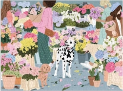 Immergiti nell'atmosfera vivace di un affollato mercato dei fiori con persone e cani, incluso l'iconico dalmata al centro della scena. Il puzzle GALISON si distingue per la stampa di altissima qualità con colori atossici e finitura opaca, che rende fedelmente colori e dettagli fini riducendo i riflessi.