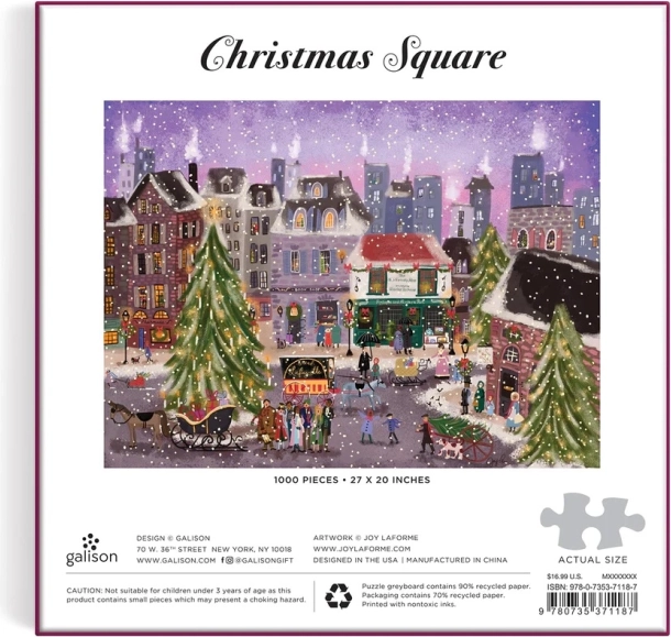 Goditi momenti di calma e nostalgia con questo puzzle natalizio, che offre una vista dettagliata su un villaggio di Natale. Grazie all'ampio impiego di carta riciclata e a una stampa atossica con finitura opaca, è garantita un'elevata qualità e una resa cromatica fedele. Il puzzle è confezionato in una scatola di qualità realizzata con materiali sostenibili con certificazione FSC®. Nella confezione troverai anche un'immagine guida per facilitare l'assemblaggio.