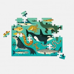 Questo puzzle accattivante raffigura su un lato i predatori terrestri, mentre sull'altro lato i cacciatori marini delle profondità. Realizzato con una significativa quota di carta riciclata, garantisce sostenibilità ecologica e non tossicità dei colori utilizzati. La finitura è opaca, il che assicura una riproduzione fedele dei dettagli e dei colori, e la superficie liscia della parte posteriore previene la formazione di polvere durante lo stoccaggio.