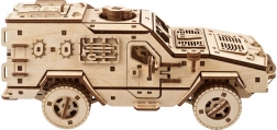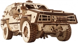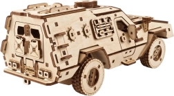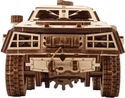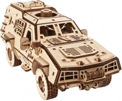 Costruisci il realistico veicolo blindato Dozor‑B come un preciso modello in legno di UGEARS. Grazie al motore a molla percorre fino a 8 m, ha trazione 4x4, sospensioni complete e un verricello funzionante. Il kit è composto da 300 pezzi, ha difficoltà media e si assembla senza colla.