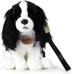Adorabile cane Cavalier di peluche alto 27 cm, con pelo morbido e lavorazione realistica. Include un elegante guinzaglio in ecopelle per giochi di passeggiata e un imbottitura eco-compatibile in PET riciclato. Ideale come regalo e compagno da coccolare a letto – sicuro fin dalla nascita.