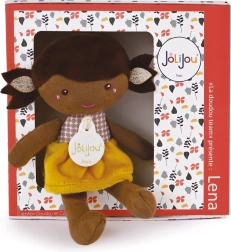 La dolcissima bambola Léna del marchio Jolijou è piccola, morbida e ideale per i più piccoli. Grazie alle dimensioni compatte di 16 cm si tiene facilmente tra le manine, sviluppa la motricità fine e stimola la percezione sensoriale. Ha occhi e bocca ricamati, un piacevole viso in cotone e un corpicino morbidissimo con un grazioso vestitino. Adatta dalla nascita, è confezionata in una scatola regalo e rispetta le norme di sicurezza CE.