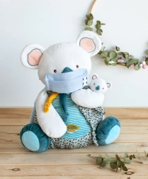Questa morbidissima koala Yoca diventerà il primo compagno di coccole del tuo bebè. La koala grande tiene dolcemente il suo cucciolo e offre una tasca nascosta in cui riporre facilmente pigiama o piccoli accessori per la nanna. Il giocattolo è progettato per il comfort e la sicurezza dei più piccoli.