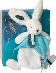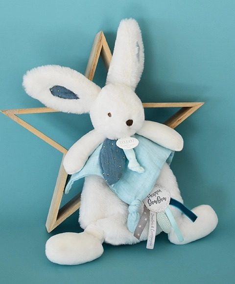 Questo set regalo del marchio Doudou include un soffice coniglietto di peluche con doudou che farà felici sia i bebè sia i genitori. Il design elegante con nastrini delicati e il moderno colore blu lo rendono una splendida decorazione per la cameretta e un peluche preferito per le coccole.