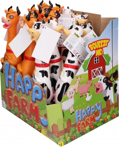 Adorabile mucca da spremere 32 cm disponibile in due colori, giocattolo ideale per bambini. Materiale sicuro e design divertente.