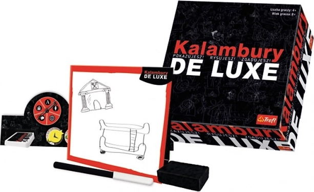 Goditi Kalambury de Luxe, un gioco che farà ridere e divertire te e i tuoi amici! Questa versione contiene oltre 800 voci, una clessidra e un calamburatore speciale per l'estrazione delle categorie, il metodo di presentazione della voce e il conteggio dei punti.