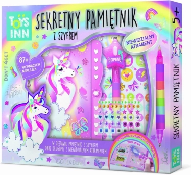 Diario segreto con lucchetto a combinazione. Include una penna con inchiostro invisibile.